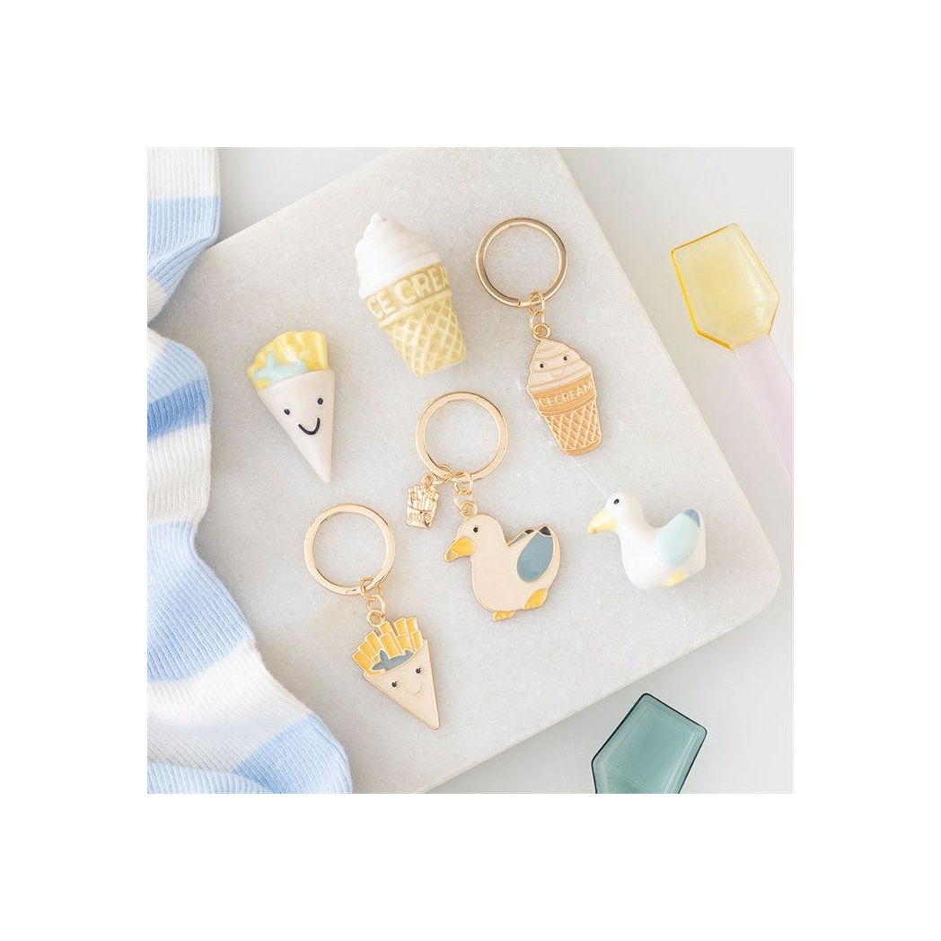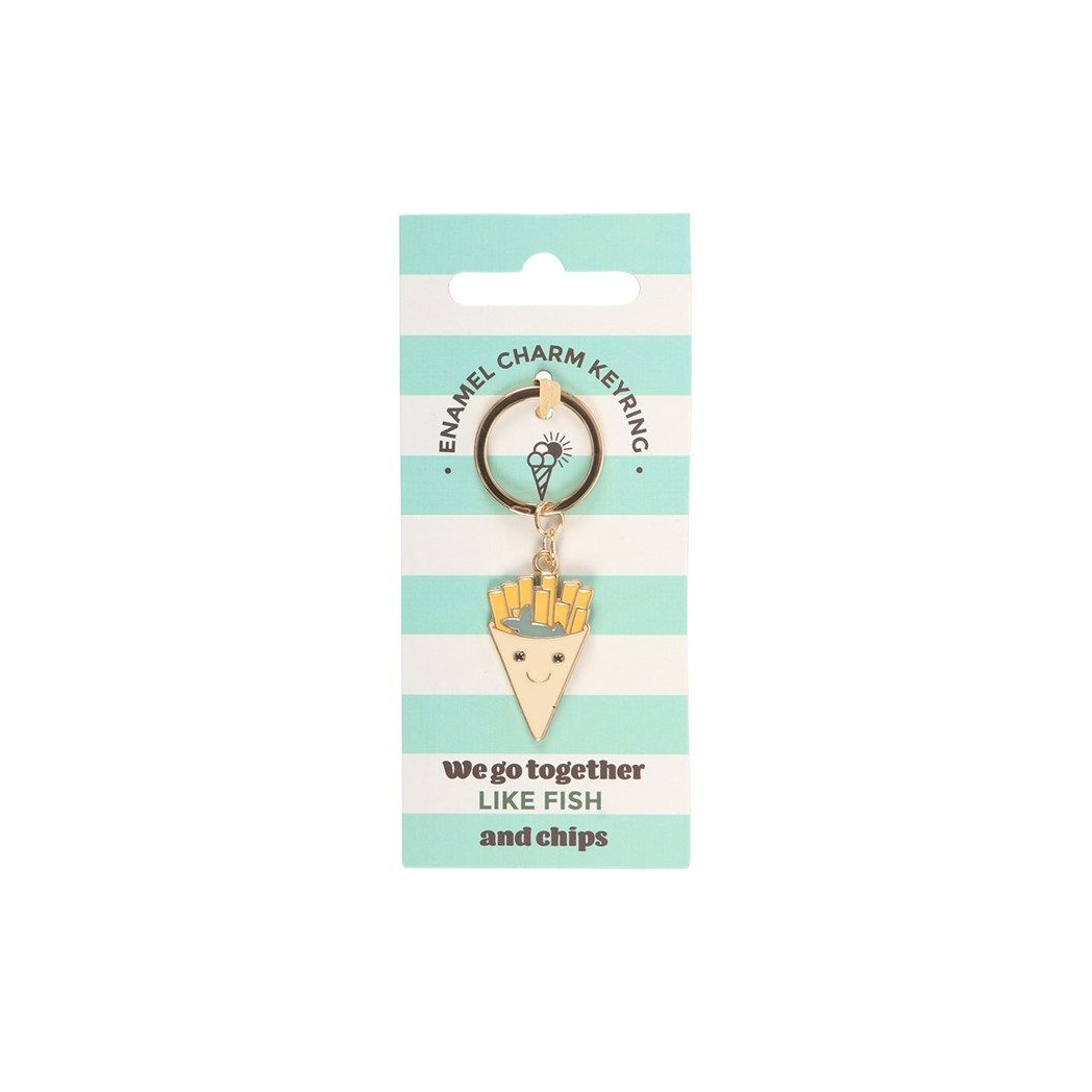 Celebrate classic seaside nostalgia with this enamel keyring featuring a cheerful green fish and chips design. A fun and quirky gift or souvenir that brings a taste of the coast to everyday essentials.
