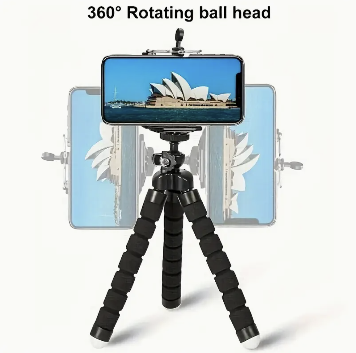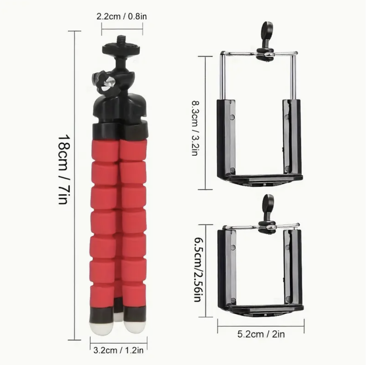 Compatible with all iPhone models, Android smartphones, compact cameras, and action cameras. Fits most devices with adjustable grip and screw mount options. -